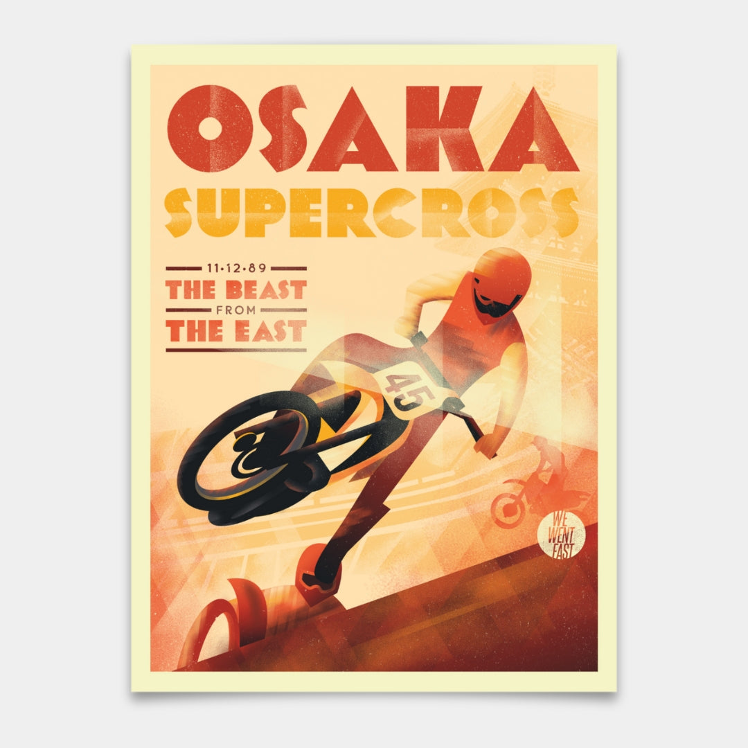 Art of The Beast is a trifecta of talent. This illustration combines the creative artwork of Tim Glasspool, the riding style and legend of Damon Bradshaw and the genius of Pete Fox, who not only captured the image this print is based on, but designed the riding gear Bradshaw wears.
