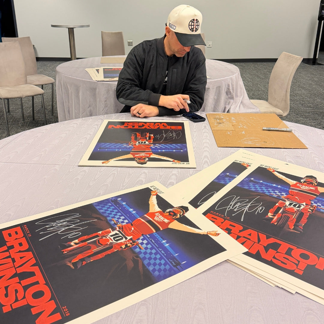 "I never even dreamed of RACING Supercross," Brayton said as he signed the first print. "Literally, being from small-town Iowa where it snowed 5 months out of the year... to win one? And Daytona?"